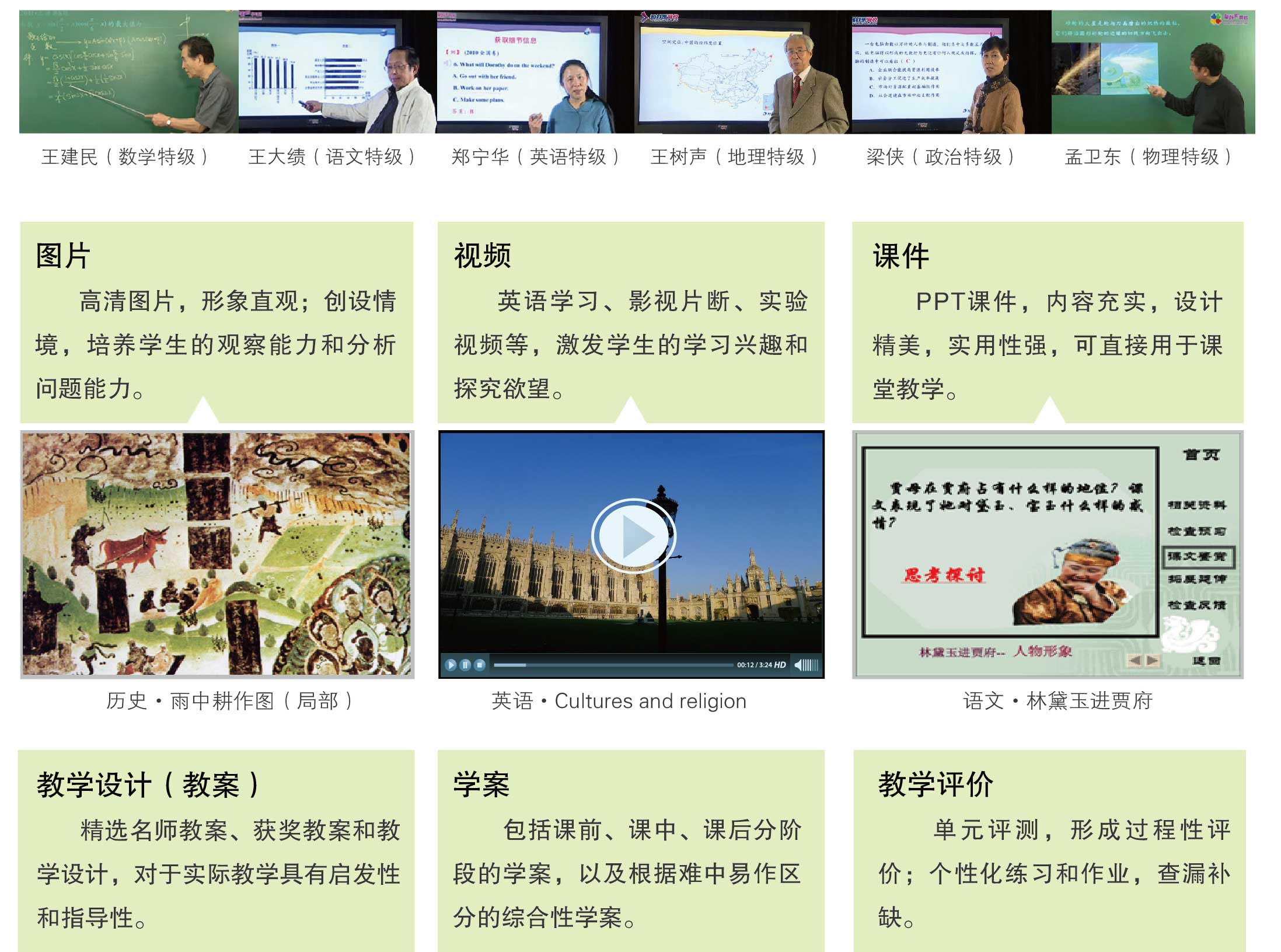 按照學(xué)科知識(shí)體系集成了“系統(tǒng)的”優(yōu)質(zhì)資源,如圖片素材、影音素材、動(dòng)畫教具、優(yōu)質(zhì)案例、參考資料、微格課例等。