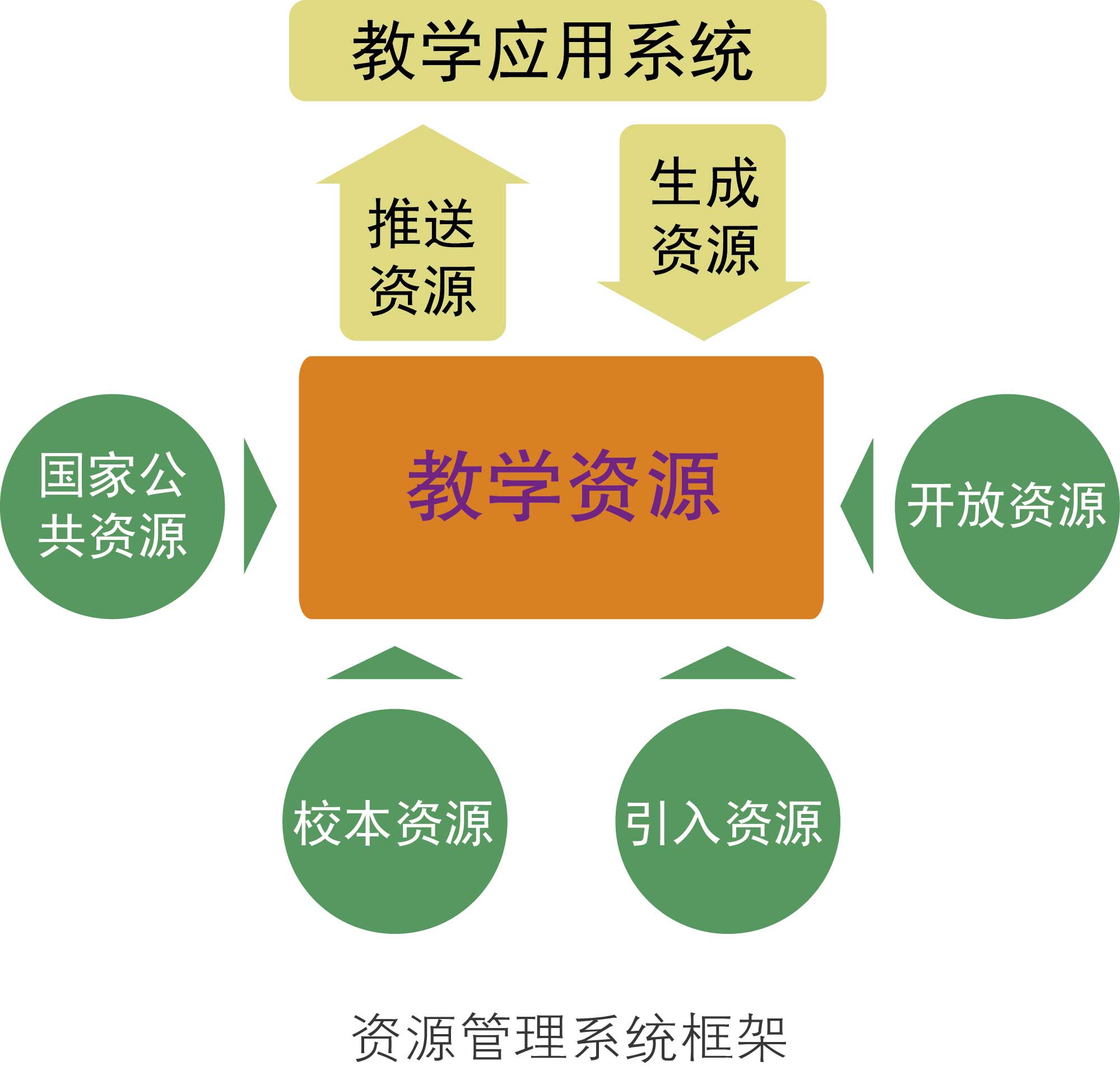通過(guò)資源管理系統(tǒng),使用戶對(duì)自己本地資源、引進(jìn)的第三方資源、教學(xué)生成資源進(jìn)行有效管理,并與教學(xué)應(yīng)用系統(tǒng)進(jìn)行對(duì)接,為教學(xué)應(yīng)用系統(tǒng)提供資源支持,為實(shí)現(xiàn)資源共建共享提供支撐。