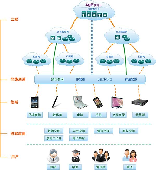 知好樂教育云服務平臺是利用云計算技術架構設計開發(fā)的、支撐多種教學應用和服務模式的軟件平臺。該平臺預制豐富的教學資源、工具軟件,并提供網(wǎng)絡互動教學應用服務。