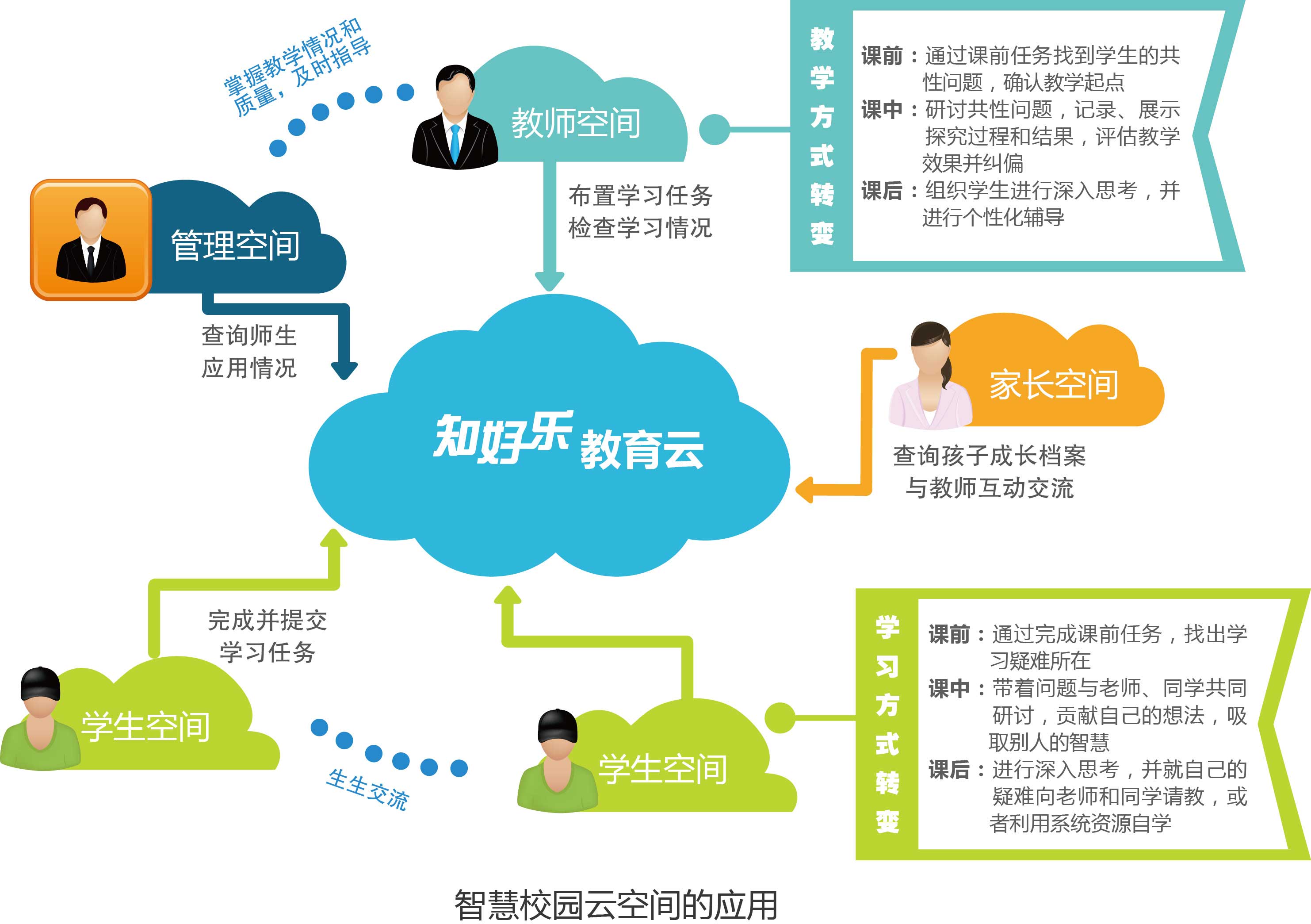 基于知好樂教育云平臺(tái)為“人人通”應(yīng)用環(huán)境下打造的網(wǎng)絡(luò)學(xué)習(xí)云空間解決方案。該方案為學(xué)校搭建基于優(yōu)質(zhì)教育資源、豐富教學(xué)應(yīng)用的教師網(wǎng)絡(luò)教學(xué)空間和學(xué)生網(wǎng)絡(luò)學(xué)習(xí)空間;搭建基于管理和服務(wù)應(yīng)用的管理空間和家長(zhǎng)空間,從而構(gòu)建了“虛擬課堂”與現(xiàn)實(shí)課堂相互融合的新型教學(xué)環(huán)境,支持學(xué)校開展自主、合作、探究的創(chuàng)新教學(xué)方式,優(yōu)化和改變師生互動(dòng)、師師互動(dòng)、生生互動(dòng)方式,實(shí)現(xiàn)教學(xué)方式和學(xué)習(xí)方式的轉(zhuǎn)變,推進(jìn)信息技術(shù)與教育教學(xué)的全面深度融合。