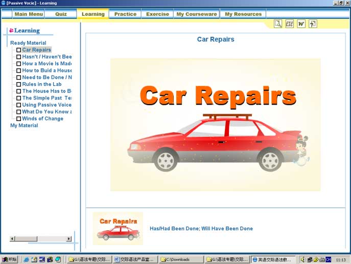 通過教學動畫、交互練習等多媒體素材為教師在相對真實的語言情境中組織互動教學、讓學生在大量語言情境中學習和運用語法知識的教學工具軟件,同時配備交互練習、個性化組卷、個性化課件制作等功能。