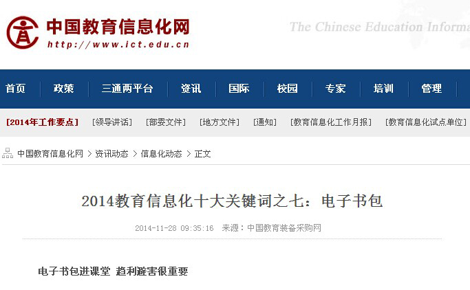 2014教育信息化十大關鍵詞之七:電子書包